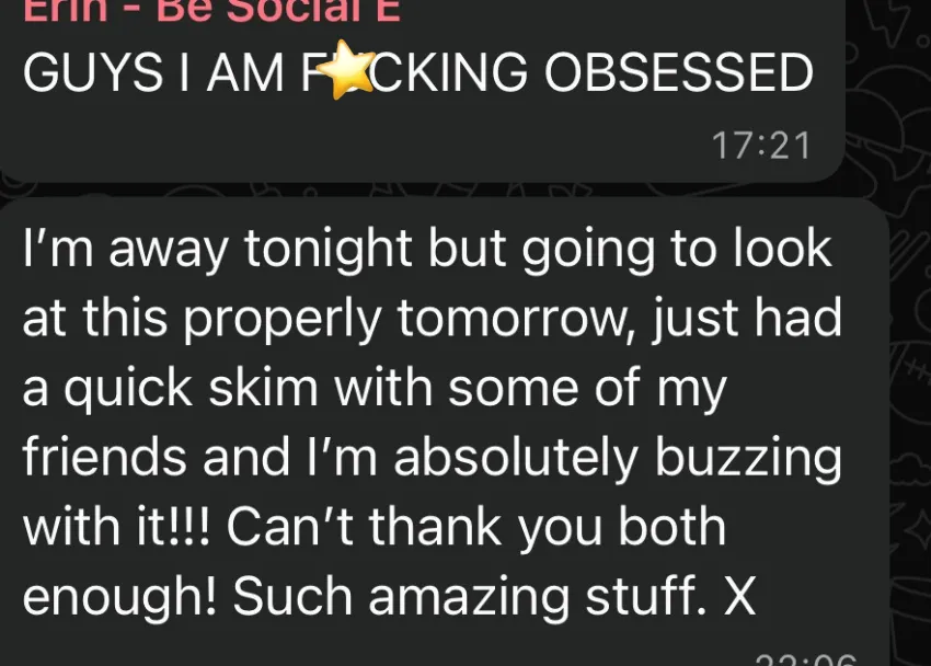 “Not only are the team personal, approachable and just so on the real life level they are really knowledgeable and supportive. I had a strategy meeting and then a content day and it has given me so much content for now and the future. We did some content shooting of things I wanted to talk about and they introduced me to some trending ideas too. It’s opened my mind to trying more things on socials and it has allowed me to not only be visible but give me the most valuable thing back – TIME with my family!